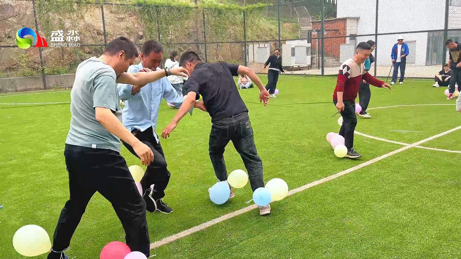 短暫休整后,下午的團建活動精彩開啟。三個小組圍繞“跳拍拍操、踩氣球、男女混足球比賽等活動”展開激烈角逐。